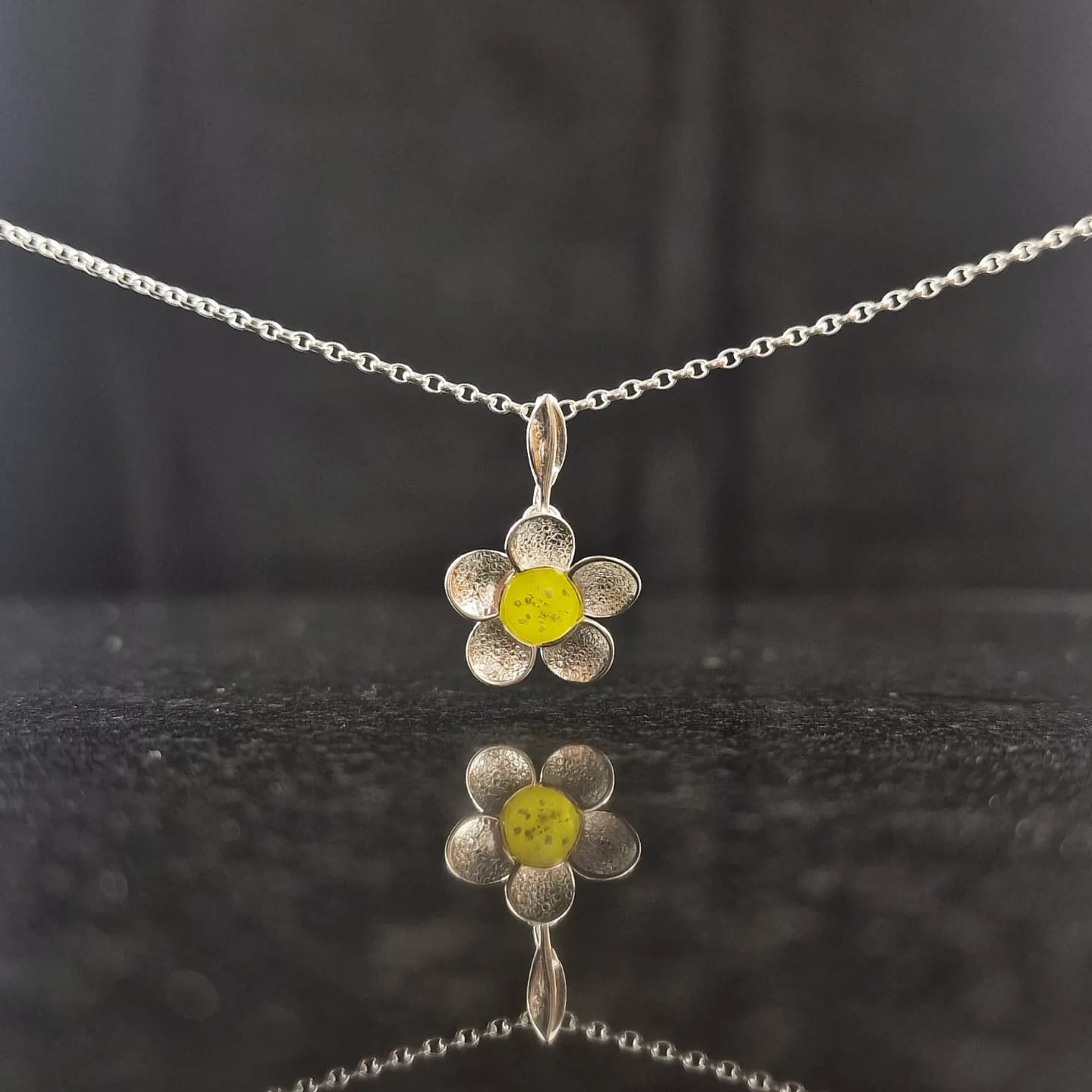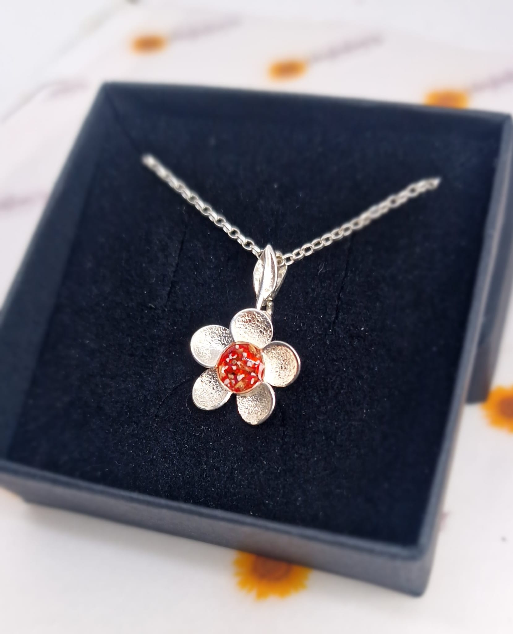 This delicate flower pendant is a wonderful memorial piece. With delicate petals surrounding your inclusions, it’s a truly beautiful and unique piece.