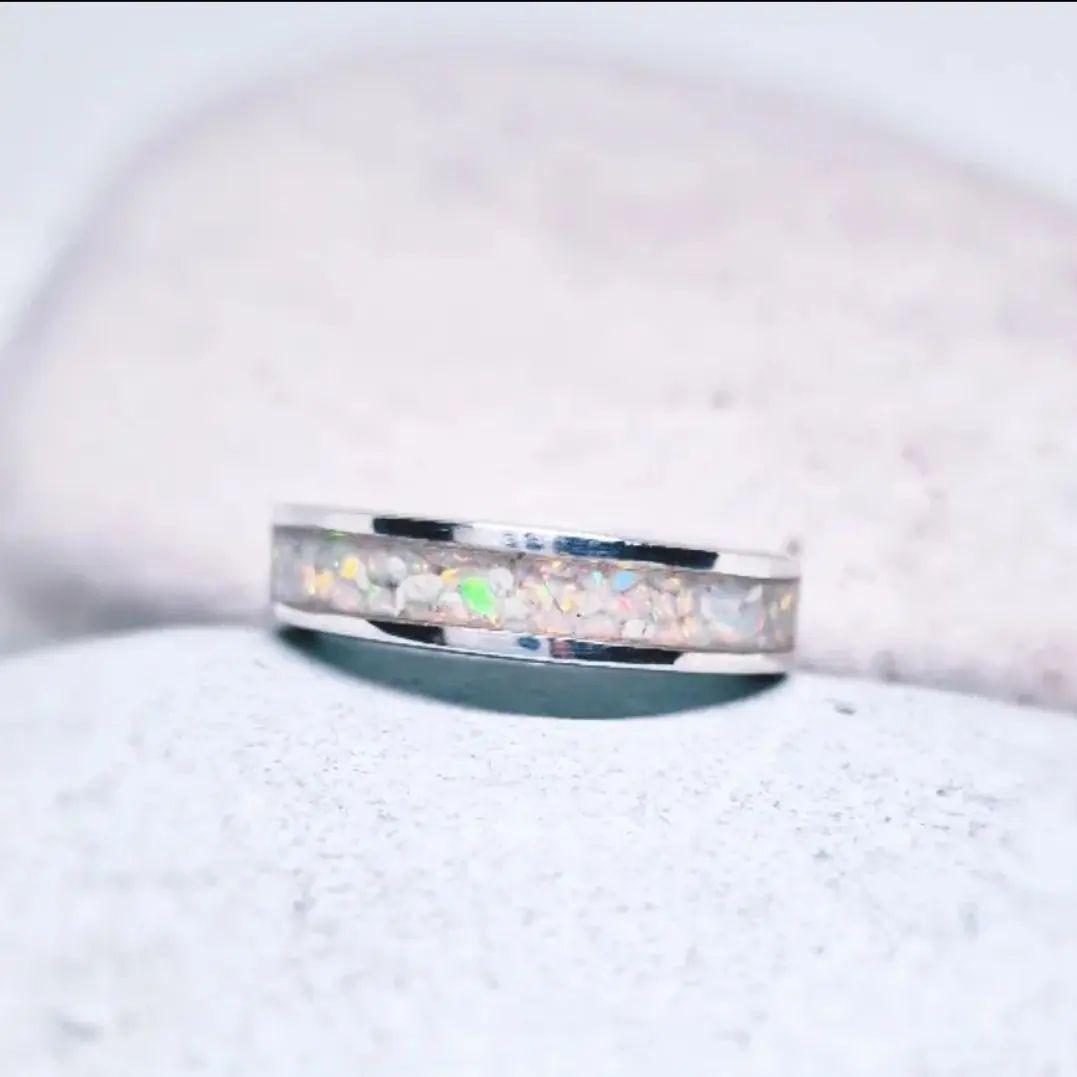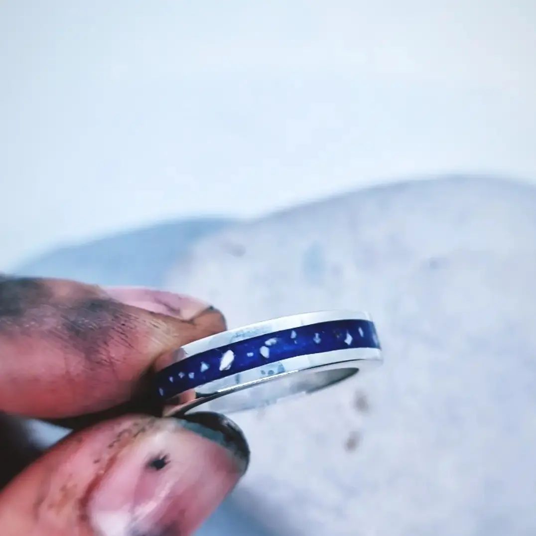 This solid ring is so striking. Whether you choose to lay your inclusions amongst crushed gemstones, with flowers or on to colour, it will definitely have you gazing at your hand remembering your loved one.