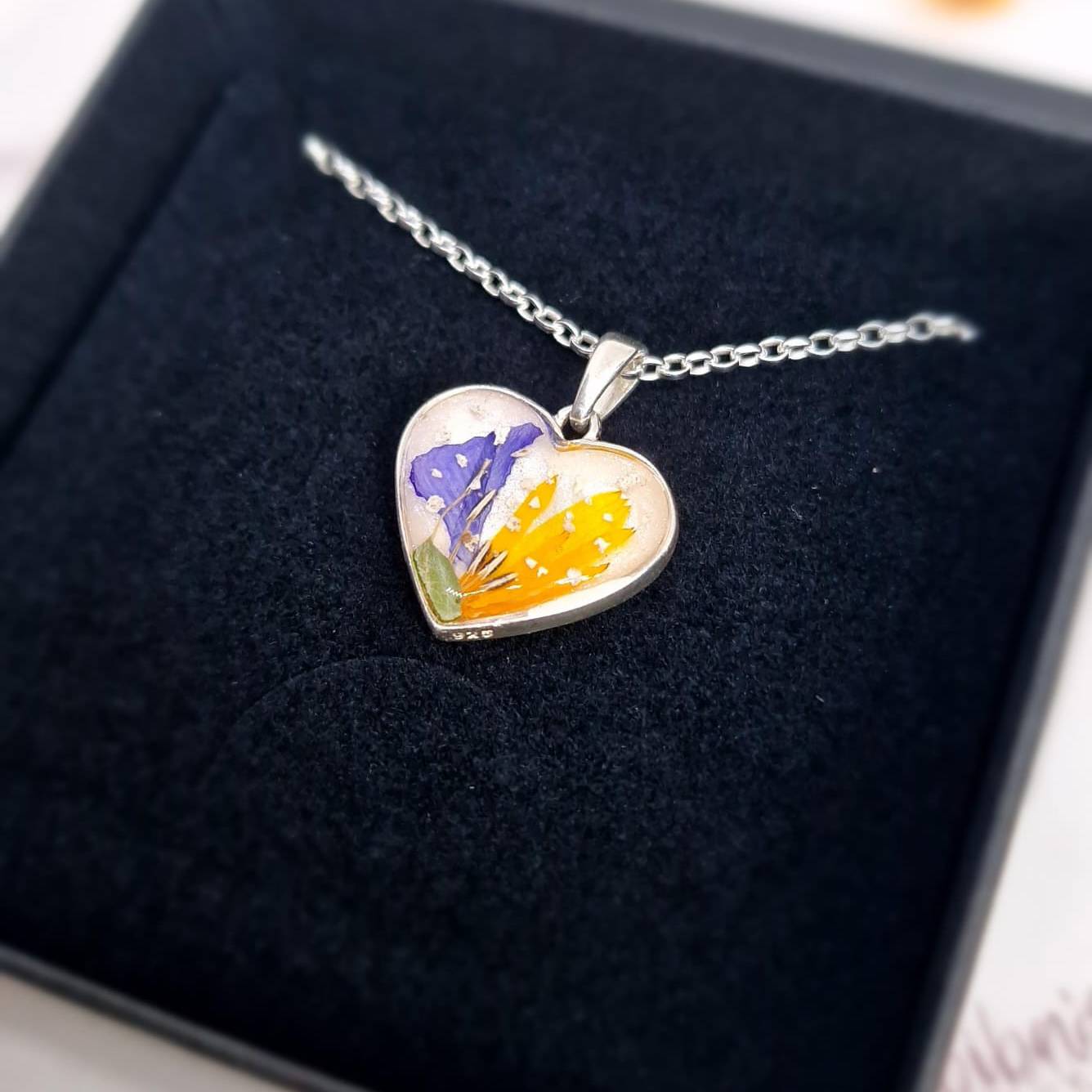 This love heart pendant can be customised to your taste. Inclusions can be set on to any colour, with any flowers or gemstone of your choosing